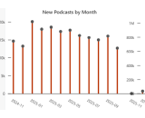 In the 12-month measurement at Listen Notes (HERE), new podcast production in took a sizable step downward in October 2025 compared to November of last year, and also month-over-month (Sep – Oct). 2024. Further, the October monthly measurement represents the lowest podcast production of the 12-month period. Click for charts. Continue Reading