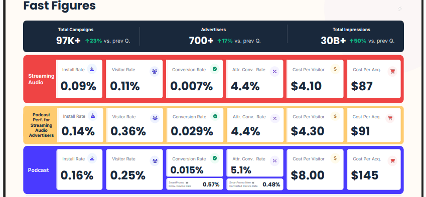 Omni-channel ad measurement platform Podscribe has released the latest edition of its Performance Benchmark Report, revealing Q1 data which aims to provide the latest data, insights, and performance in the audio advertising industry. It reveals proprietary data on trends, benchmarks, and best practices current in audio advertising.