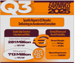 “The business is healthy. We’re shipping faster than ever. And we have the tools we need — pricing, product innovation, operational leverage, and eventually the ads turnaround.” — Daniel Ek, CEO, Spotify